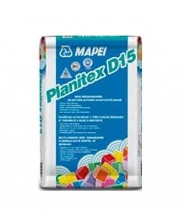 Samonivelační podlahová stěrka s velmi nízkým obsahem emisí, bez obsahu chromitanů vhodná pro aplikaci zubovou stěrkou, hladítkem (smoother) nebo čerpadlem, kterou lze použít pro stěrkování, vyrovnání a vyhlazení nerovností všech běžných podkladů používaných ve stavebnictví. PLANITEX D 15lze použít jako přípravu podkladu před pokládkou textilních krytin, krytin z jehličkové plsti, PVC, kaučuku, linolea, parket, keramiky a přírodního kamene. Nepoužívat v exteriéru a ve vlhkých prostorách! Podklad nesmí být vystaven vzlínající kapilární vlhkosti. Při lepení dřeva nesmí být použity výrobky ve vodní disperzi.
