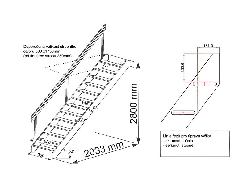Hloubka schodu 163 mm/ 151 mm