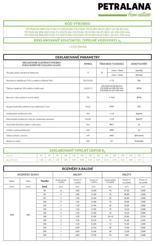 Popis: PETRALANA PETRAFAS Fasádní deska tl. 240mm