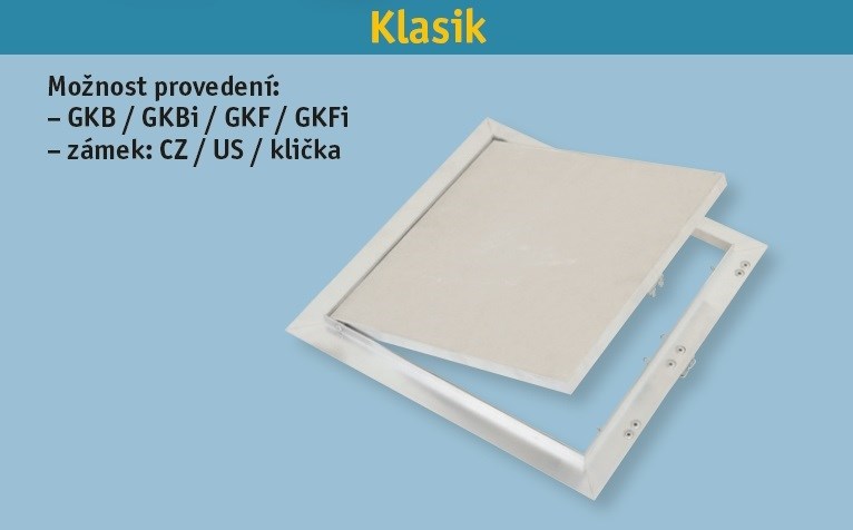 Popis: Revizní dvířka KLASIK do SDK konstrukcí 200/200/12,5 GKB se zámkem CZ (pérko)