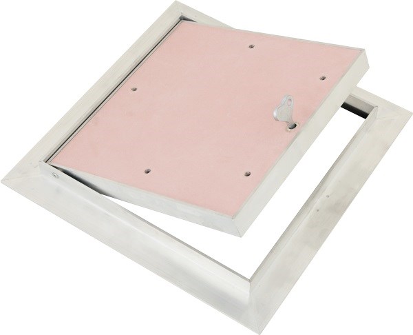 Popis: Revizní dvířka PROTIPOŽÁRNÍ EI45/EI60 do SDK stěny 300/300/25 GKF s US zámkem + kličkou