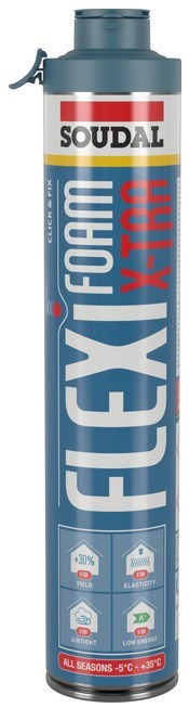 Popis: SOUDAL Pistolová montážní pěna FLEXIFOAM X-TRA CLICK&FIX 750ml