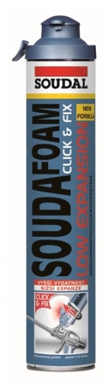 Popis: SOUDAL Pistolová montážní pěna SOUDAFOAM GUN CLICK LOW EXPANSION 750ml
