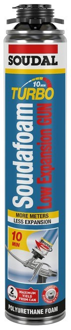 Popis: SOUDAL Pistolová montážní pěna SOUDAFOAM GUN LOW EXPANSION TURBO 750ml