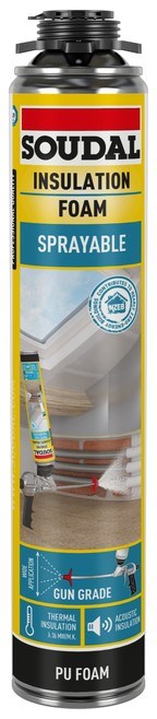 Popis: SOUDAL Pistolová montážní pěna stříkatelná izolační 750ml