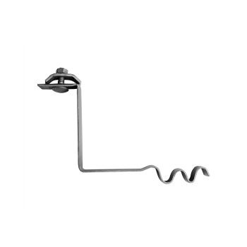 Držák k upevnění hromosvodového drátu v ploše střechy vyrobený ze žárově pozinkované oceli.