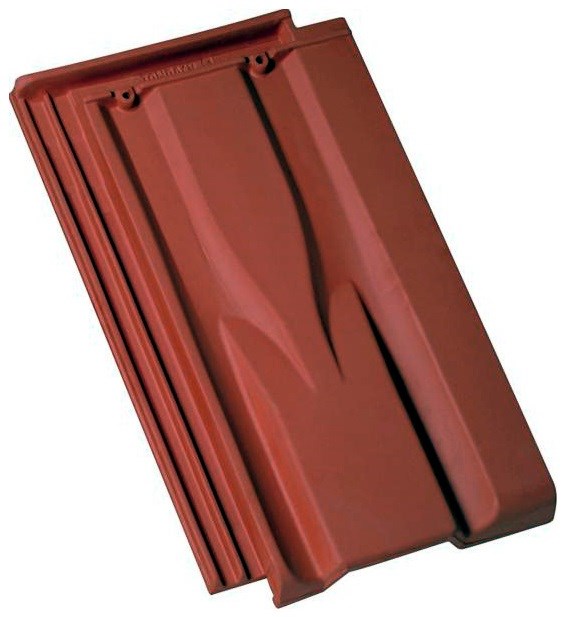 Taška větrací – systém Tondach naplňuje zásady větraného střešního pláště. K tomuto účelu se tašky umisťují v druhých řadách po obou stranách hřebene střechy (ev. nároží) v potřebném množství (cca 20 ks/100 m2).
