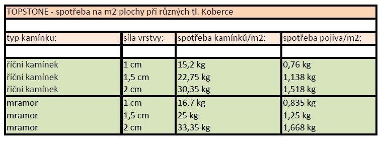 K dalším přednostem patří, že je povrch TOPSTONE vodopropustný! Tzn., že voda proteče přes materiál na beton, na kterém je položen a po betonu odteče vyspádovaným směrem. V zimě, pokud voda zamrzne, materiál neodmrzá a netrhá se, protože je pórovitý a led se má kam rozpínat. Obecně platí: čím větší teplota vzduchu, tím rychleji povrch tuhne a zasychá. Pochůzný je za 24 hodin, k úplnému vytvrdnutí dochází za 2 dny. Další obrovskou předností povrchů Topstone, kterou ocení zejména majitelé starších nevzhledných betonových ploch je, že je můžete použít k jejich RENOVACI, aniž byste museli starší beton jakkoliv upravovat.