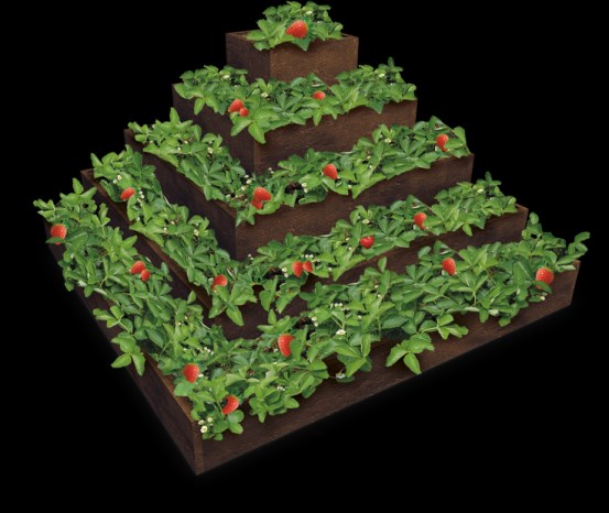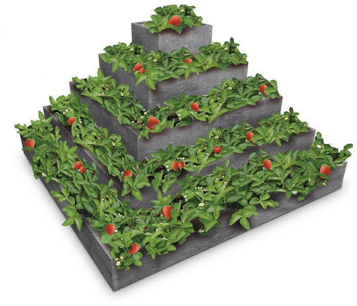 Máte malé prostory, i tak byste chtěli pěstovat jahody. Nabízíme velmi efektivní řešení. Na ploše 2x2m můžete s úspěchem pěstovat až 70 rostlin. Montáž je velmi jednoduchá, lehká je i demontáž. Můžete využít všech pěti pater. Vhodné nejen pro malé zahrady. Vyrobeno z recyklovaného materiálu odolného proti přírodním vlivům. Bezúdržbový.