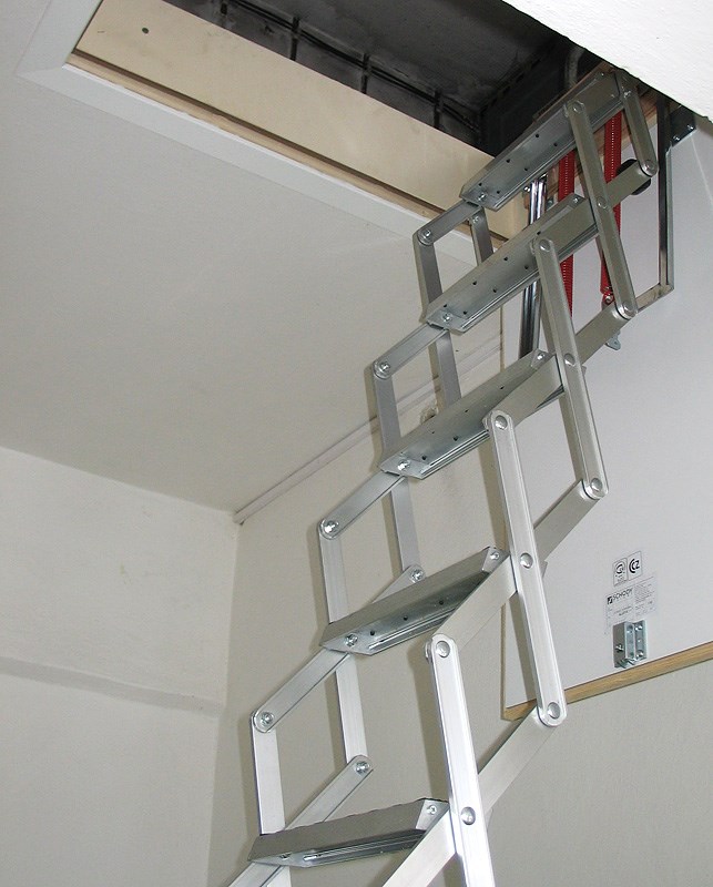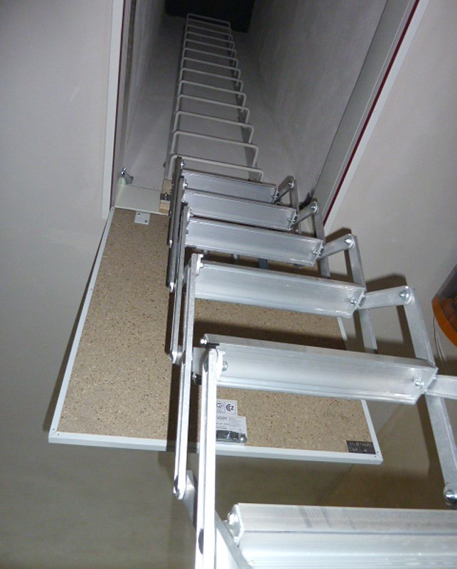 - schody dodávané včetně kovové stahovací tyče, která je balena samostatně, montážní návod a kotvící prvky jsou připevněné k mechanismu schodů