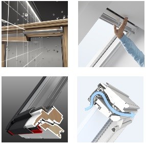Nová generace střešních oken VELUX nabízí až o 18 % více světla díky větší prosklené ploše. Výrazné vylepšení izolace konstrukce okna se speciálním vzduchotěsným těsněním. Instalace střešního okna VELUX GGU je možná do střech ve sklonu 15 až 90 stupňů.
