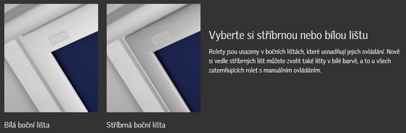 Každé střešní okno VELUX je označeno na horní části křídla identifikačním štítkem s informačními údaji. Uvedený rozměr střešního okna slouží k objednání veškerých zastiňovacích doplňků VELUX. Ideální pro použití zejména do ložnic či dětských pokojů, kam nevpustí sluneční paprsky i když je právě letní den. Díky novému tenkému designu bočních lišt a horní krycí lišty a zároveň konstrukčnímu vylepšení poskytuje roleta nejlepsí zatemnění na trhu. •Brání prostupu slunečního svitu.