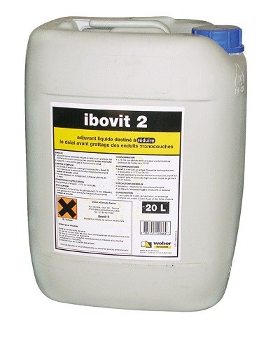 Urychluje tuhnutí omítky weber.pral při práci v nízkých teplotách. Přidává se do záměsové vody. Spotřeba:4-8l Ibovitu 2 na 200 l vody.