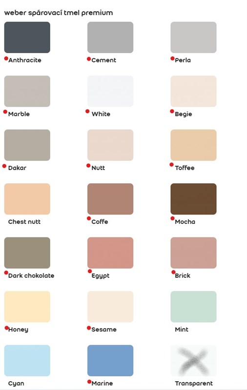 WEBER.COLOR COMFORT je mrazuvzdorný práškový spárovací tmel pro vnitřní i vnější použití. Šířka spáry 1-6 mm - protiplísňový - odstín pro webercolor comfort označný červenou tečkou, upřesnit v objednávce do doplňujících informací !!!