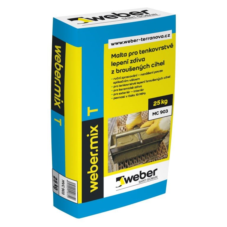 Popis: WEBER Webermix T - tenkovrstvý tmel na broušená cihly 25kg