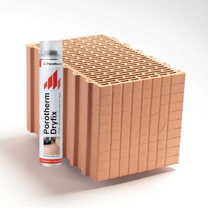 Součástí dodávky je odpovídající množství zdicí pěny Porotherm Dryfix. Pro založení stěn se dodává požadované množství zakládací malty Porotherm Profi AM (Anlegemörtel).