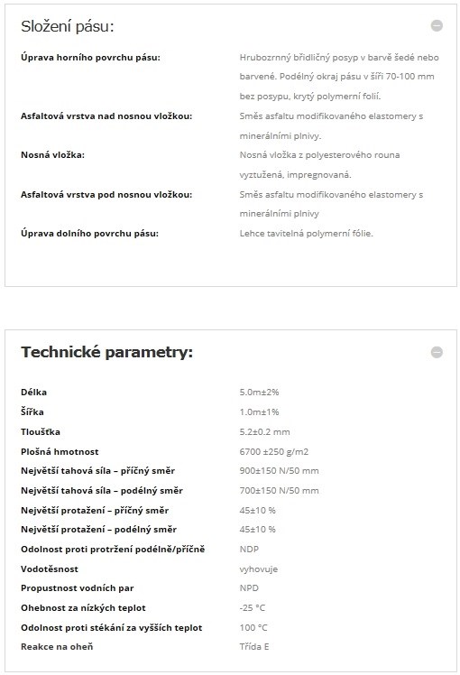 Pásy se zpracovávají natavováním nebo mechanickým kotvením na vhodný podklad. Minimální teplota ovzduší i vlastního pásu při zpracování je +0 °C . Velikost podélných spojů 100 mm (min. 80 mm). Velikost příčných spojů 150 mm (min. 120 mm).